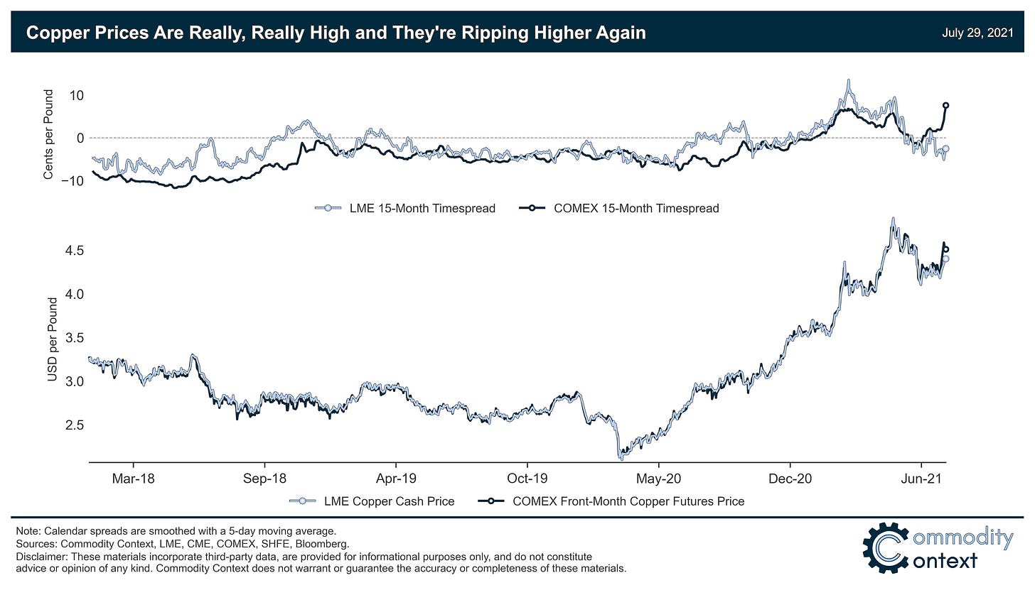 Copper prices are really, really high and US futures contracts are sitting around $4.50 per pound. For those less familiar with copper pricing: copper above $4 per pound is kinda like crude oil above $100 per barrel, except even rarer.