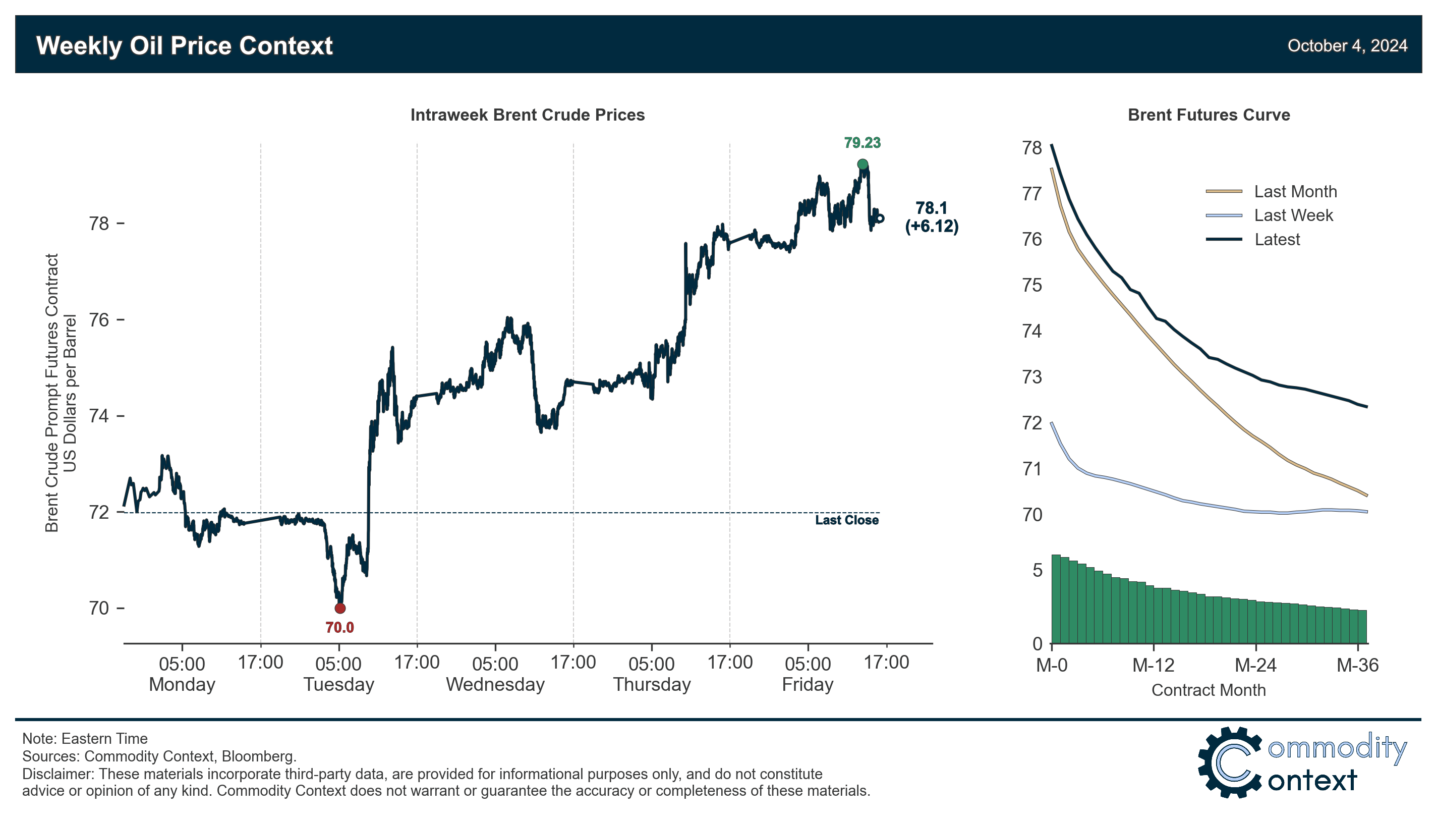 Flat prices roared higher, jumping more than $6/bbl on the week as Iranian missile strikes against Israel and subsequent concerns that retaliatory strikes could target Iranian oil infrastructure lit the powder keg of near-record overstretched short speculative positioning in crude contracts.