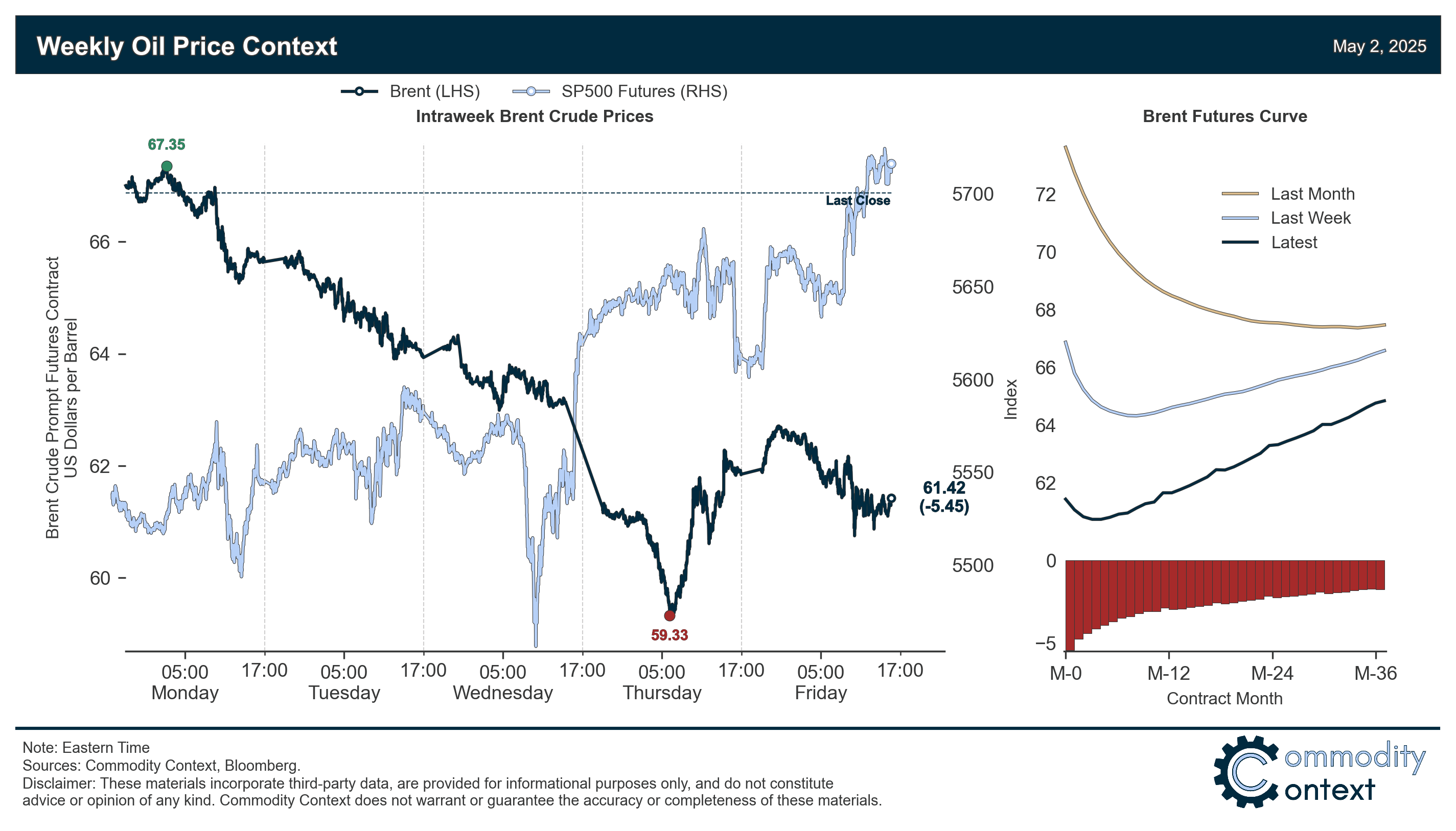 Flat Prices fell by roughly $5.50/bbl for Brent to finish the week in the low-$60s and briefly dipped into the $50s again on Thursday before Iran sanctions headlines supported the barrel higher again.