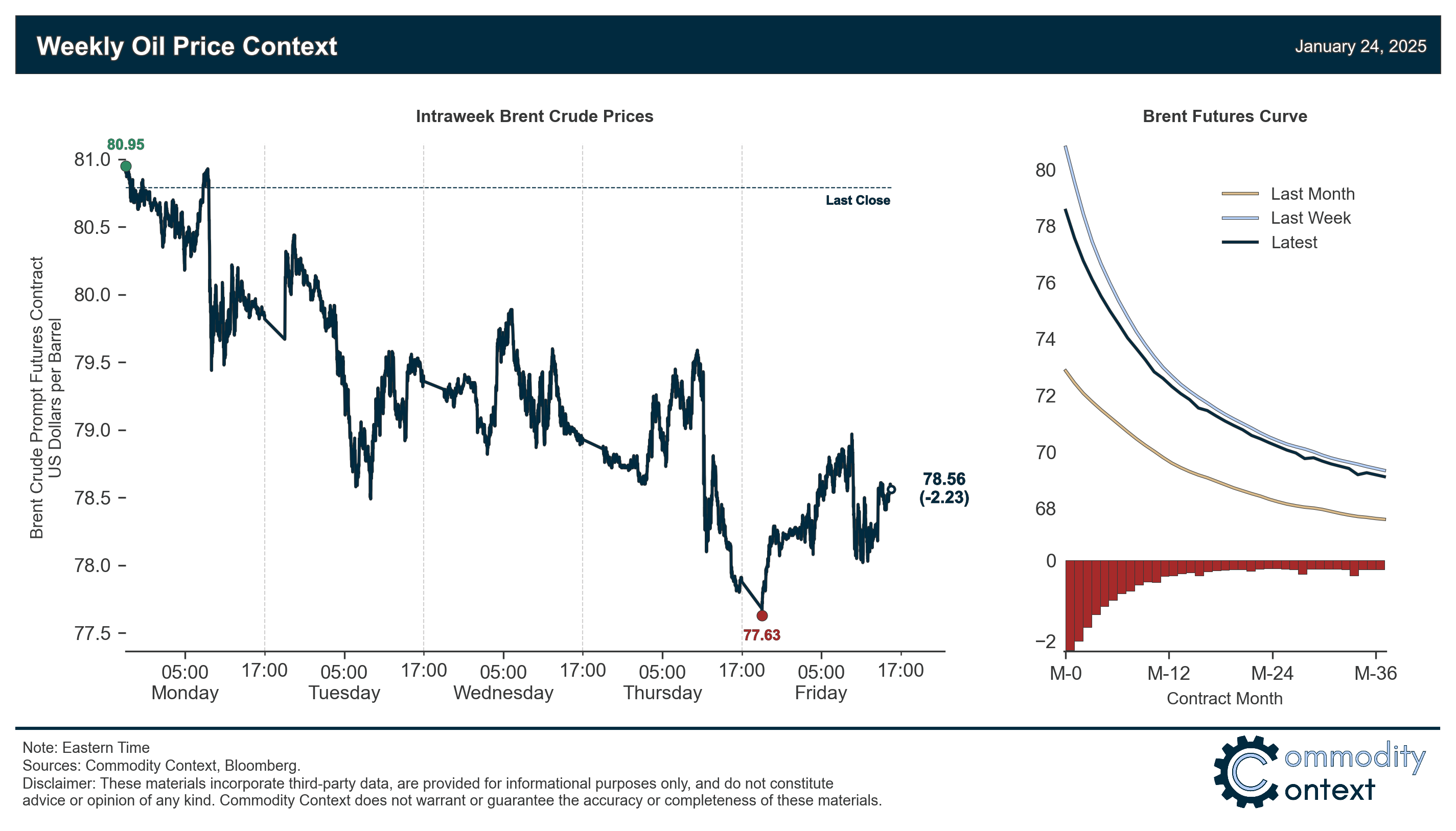 Crude closed lower on the week for the first time in 2025, with flat price declines led by prompt timespread weakness and punctuated by Trump once again attempting to jawbone the barrel lower.