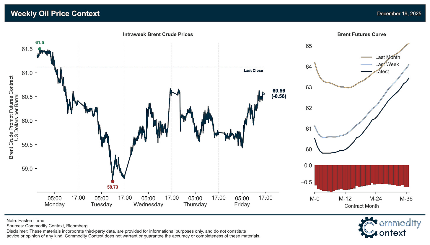 Flat Prices ended less than a dollar per barrel lower, just above $60/bbl Brent, after bouncing back from the lowest level since early 2021 (<$59/bbl Brent) on Tuesday amidst intense speculative selling pressure.