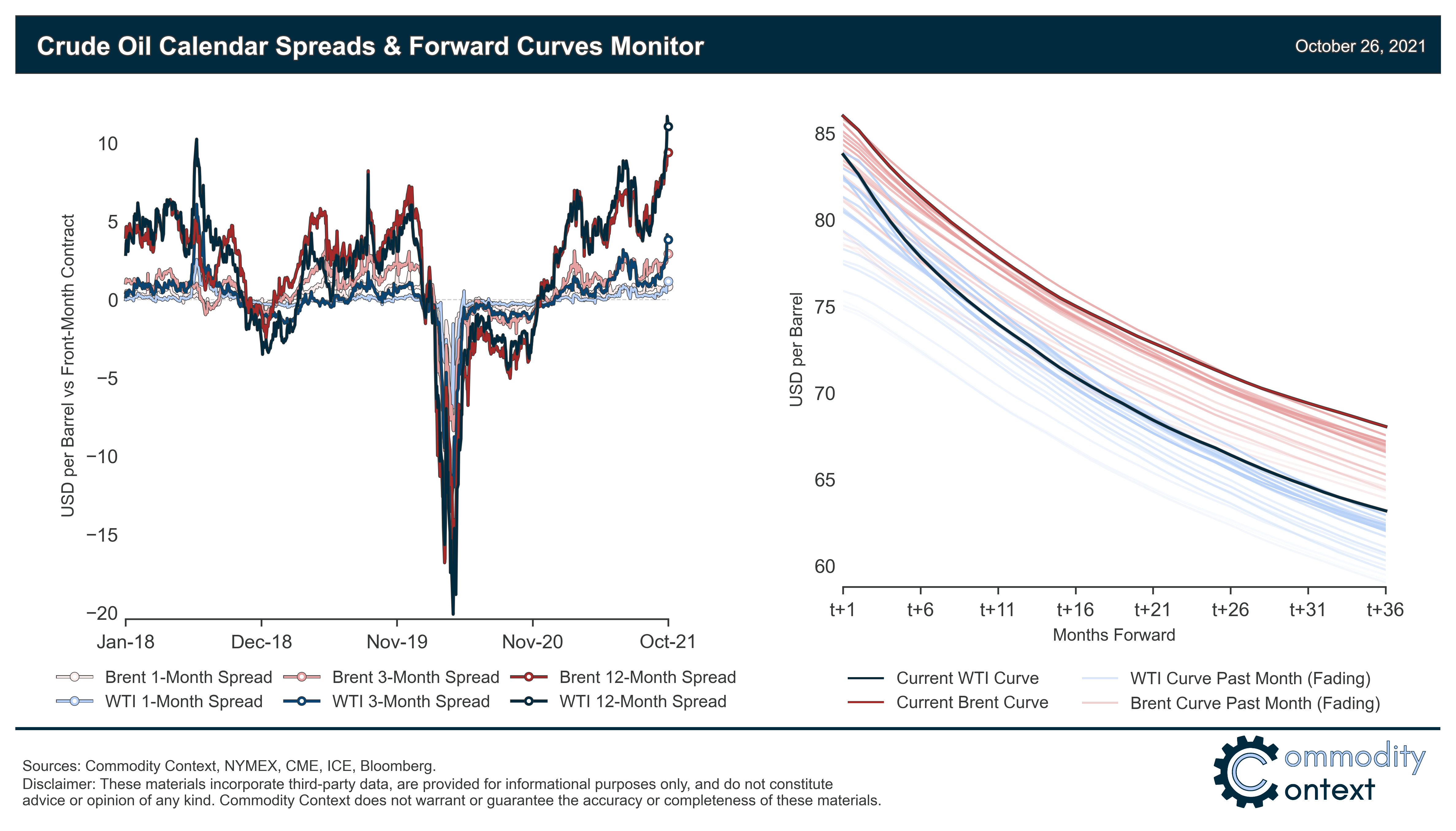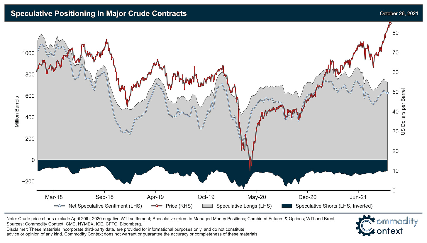Crude prices reached fresh pandemic-era highs of $85 per barrel (WTI); oil continues to see strong fundamental support, yet headwinds are building.