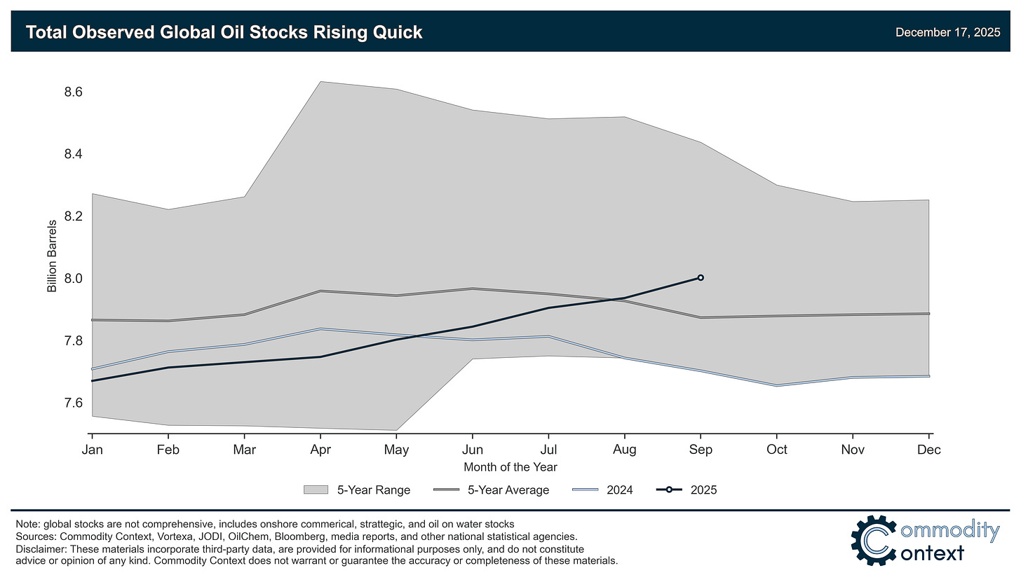 Global petroleum stocks in 2025 have risen at their fastest pace since 2020, but the product mix, geography, and stage many of these barrels occupy in the supply chain has thus far spared crude prices
