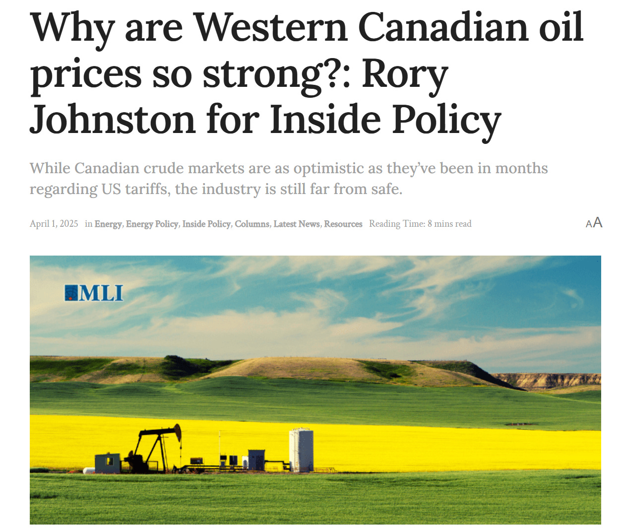 I'm excited to announce our new report with the Macdonald-Laurier Institute, a leading independent Canadian policy think tank, that examines why Western Canadian crude prices are so uncommonly strong at the moment.