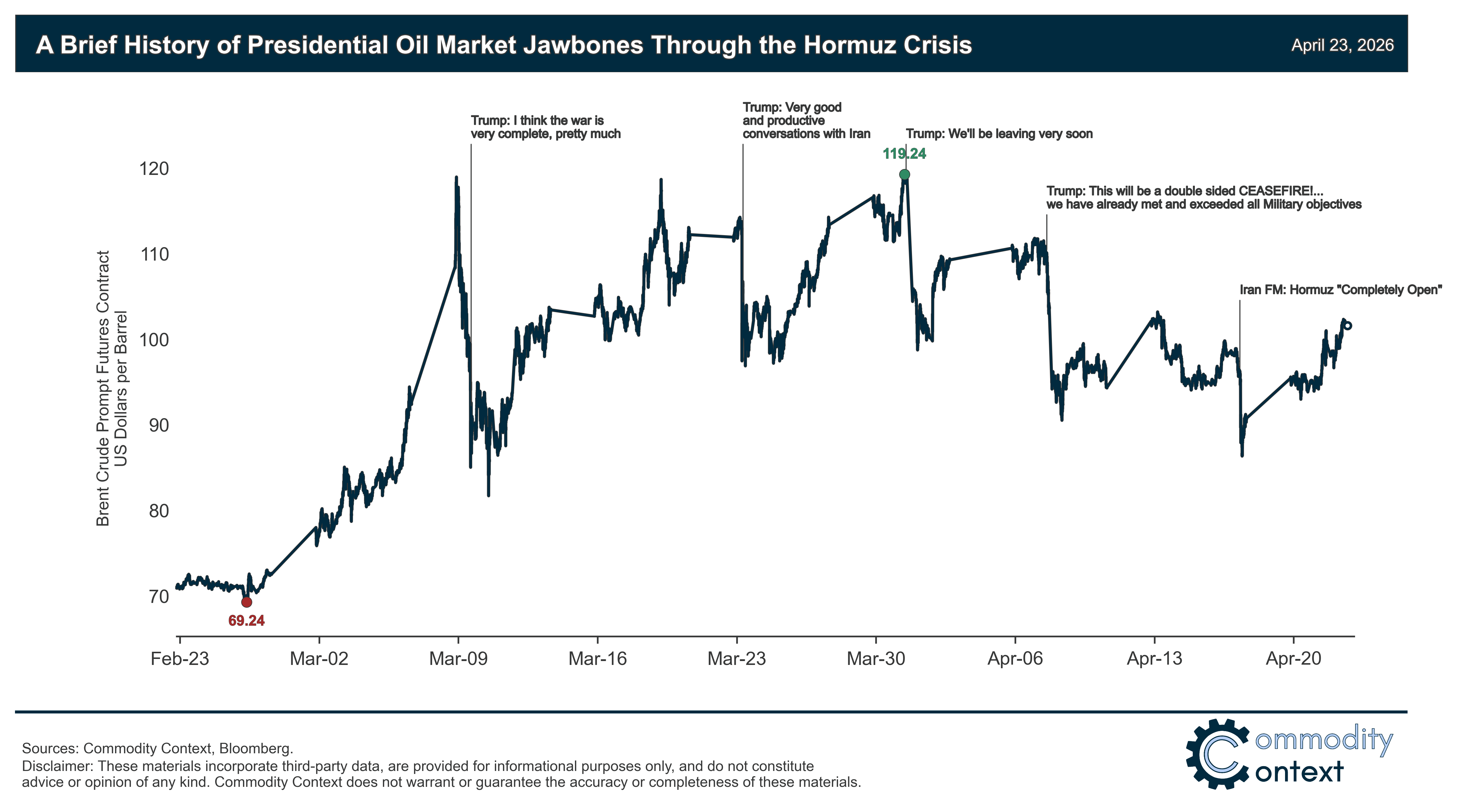 The best explanation for the juxtaposition between headline shock and pricing is a combination of the (lack of) realized inventory declines as well as Presidential jawboning and the April 7th ceasefire.
