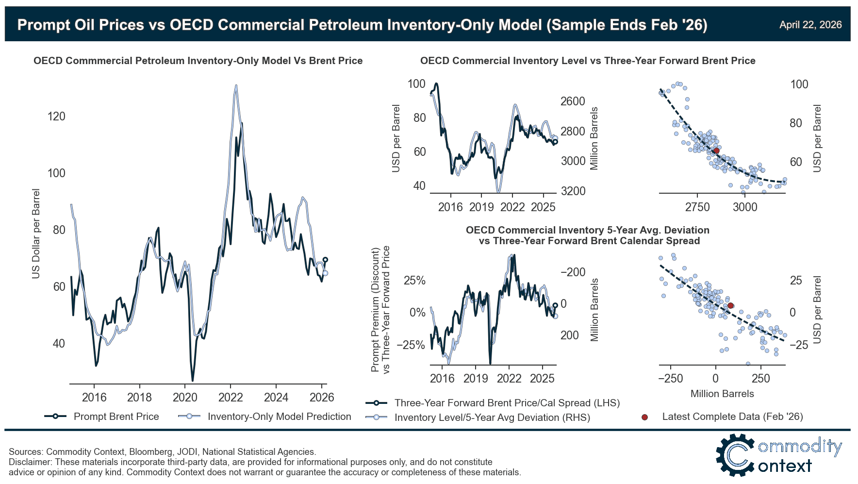Therefore, the best explanation for the pullback in crude pricing through April is the combination of (lack of) realized inventory declines as well as Presidential jawboning and the April 7th ceasefire. The world has stocks—both commercial and emergency—to buffer a temporary shock and, so, we’ve seen much of the pricing pressure manifest in the very front of the futures curve and into the physical market. Meanwhile, the White House’s desperate attempts to jawbone and talk down market reactions have distorted market sentiment. Most recently, the ceasefire materially shaved off some of the worst tail risks, including more direct attacks on regional production infrastructure, though has thus far failed to meaningfully reopen the Strait.