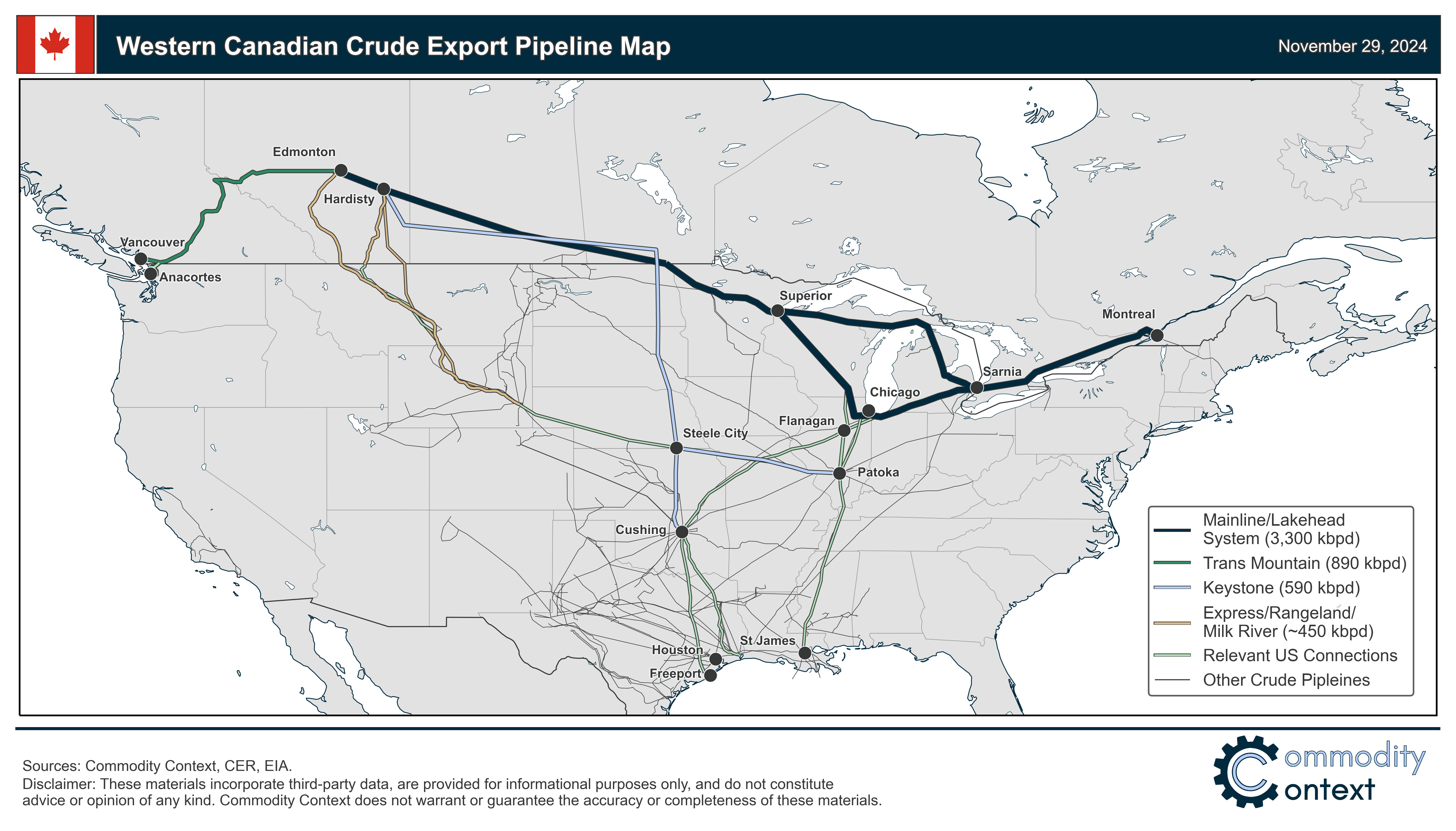 While I continue to believe that the base case scenario does not see tariffs imposed on Canadian barrels, the probability is clearly rising and it’s now worthwhile to take an even closer look: the potential winners, the potential losers, and just how barrels might be rerouted—not just across North America, but globally.