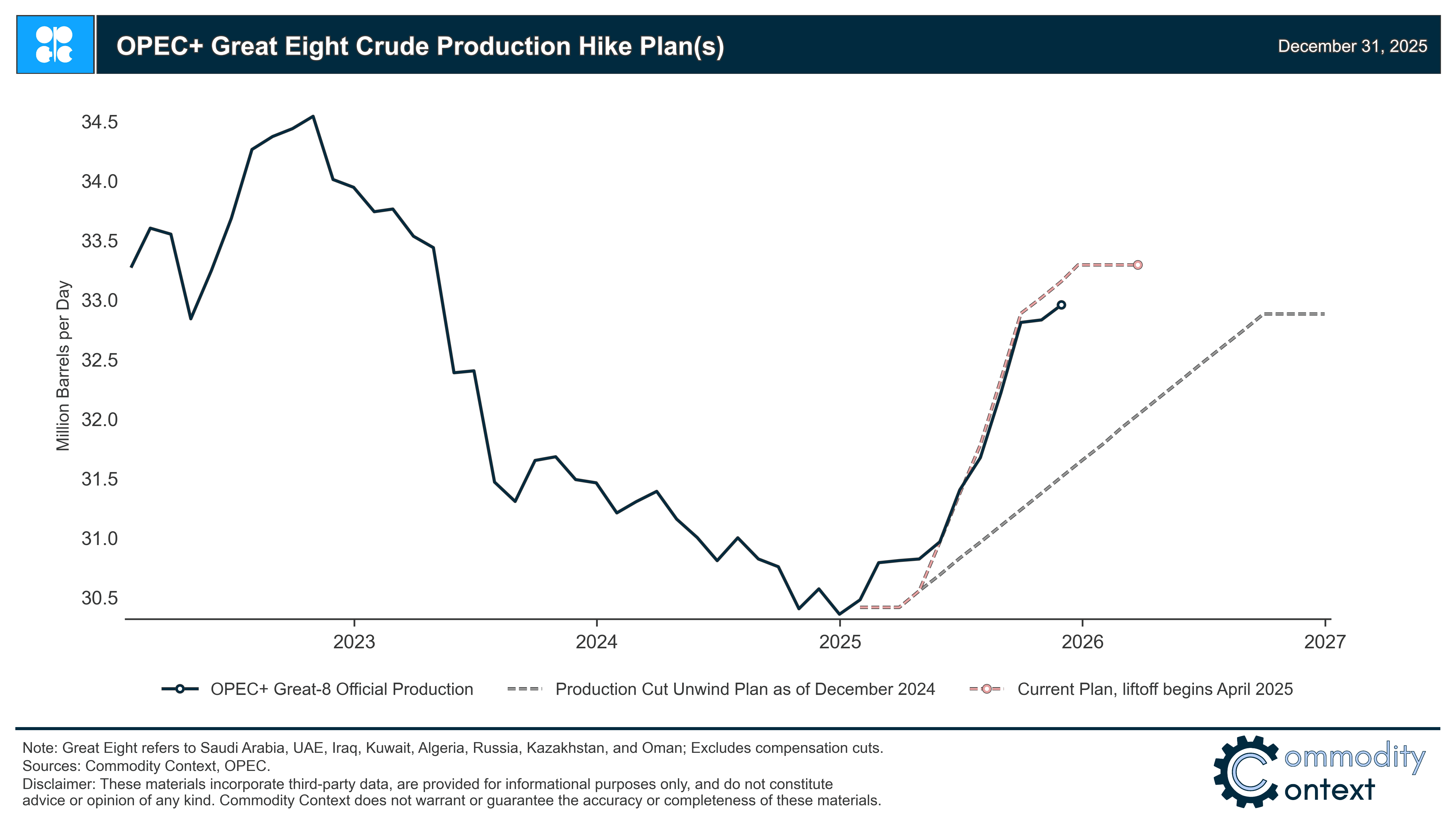 Donald Trump and OPEC+ exercised the greatest influence over the oil market in 2025. OPEC+ increased production quotas by a staggering 2.9 MMbpd, and rapidly accelerated the timeline for the first tranche of production cut unwinding from 18 months to 6 months—and all indications are that the group plans to continue to increase production through 2026. The White House ramped up sanctions across three major pariah oil exporters, which strained supply chains and throttled back effective supply availability. Of course, tariffs dominated the headlines for the first half of the year; but, thankfully the bark was far worse than the bite of this file. The futures curve took on a bizarre smiley-faced shape, which reflected the truth that the broad market expectations of mounting supply surpluses were not being realized as quickly as anticipated.