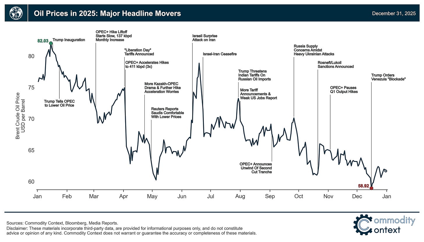 Below you’ll find my reflections on the past year, and, oh, what a year it was. 2025 may very well be the strangest, most head-fake-y year in memory following a stretch of truly historic years in the oil market.